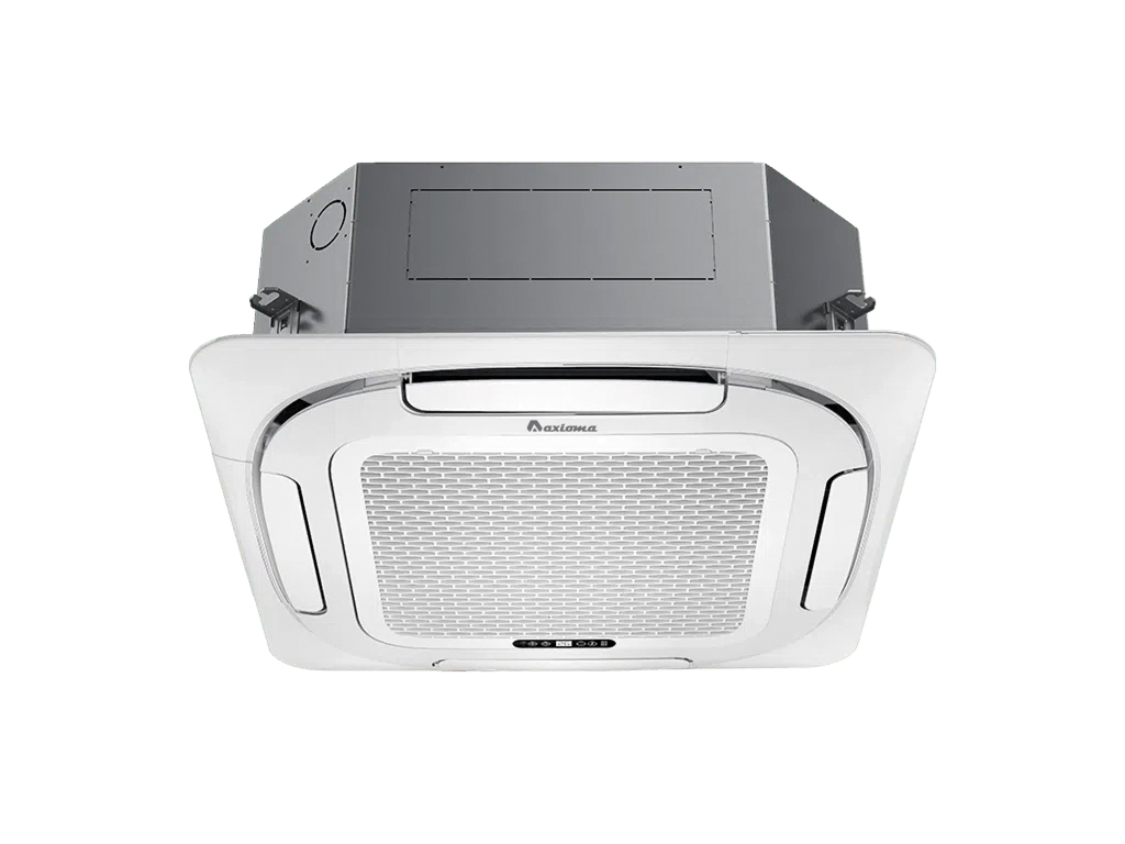 Кассетный внутренний блок имеет современный дизайн, который хорошо вписывается в потолок. Кондиционер обеспечивает равномерное распределение воздуха по всему помещению, создавая комфортные условия.
