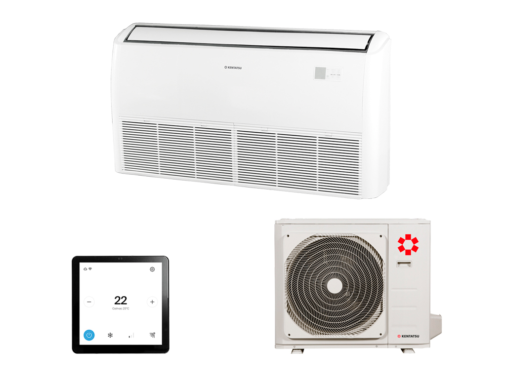 Сплит-системы напольно-потолочного типа Kentatsu KOMASU — универсальное решение, открывающее широкие возможности для монтажа в помещениях, где размещение встраиваемых кассетных и канальных блоков невозможно. Автоматическое качание жалюзи и заслонок делает распределение воздуха в помещении равномерным.