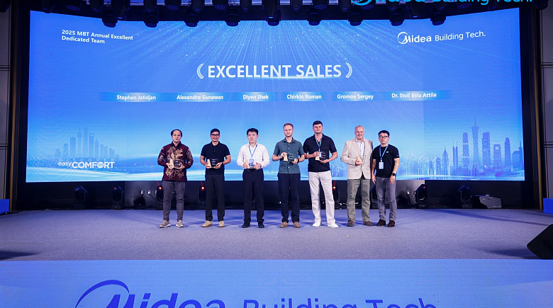 Наши представители — руководитель проектов Роман Чиркин и менеджер по работе с ключевыми клиентами Сергей Громов — не только приняли награду, но и активно участвовали в деловой программе. Сергей выступил с презентацией для иностранных коллег, подробно рассказав об успешном опыте внедрения и реализации масштабных проектов с использованием климатического оборудования Midea в России.