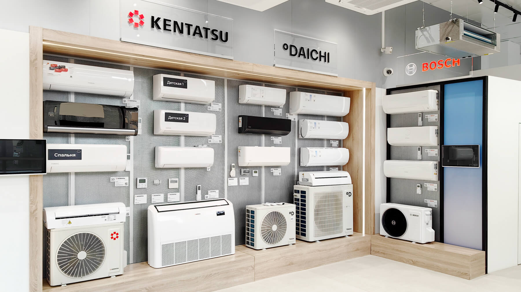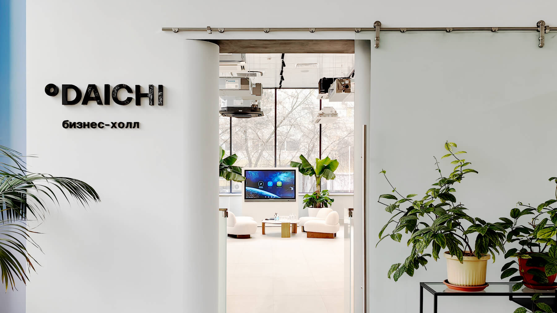 В шоуруме представлен наиболее полный модельный ряд бытовых и коммерческих сплит‑систем, VRV/VRF оборудования всех брендов из продуктового портфеля Даичи, а также наши собственные «Облачные» разработки.