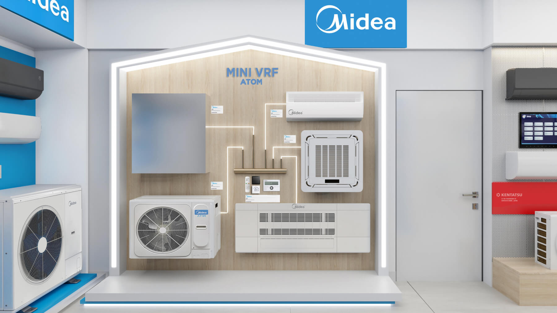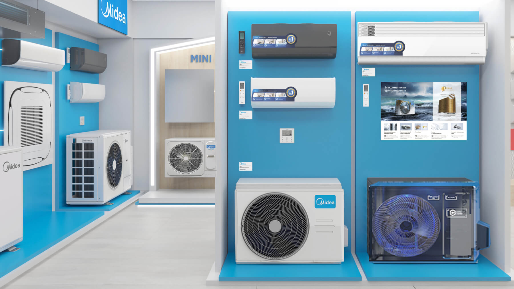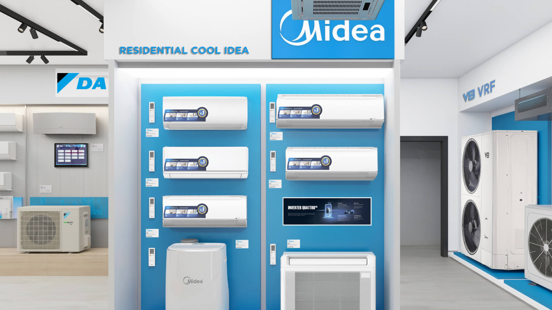 В шоуруме представлен наиболее полный модельный ряд бытовых и коммерческих сплит‑систем, VRV/VRF оборудования всех брендов из продуктового портфеля Даичи, а также наши собственные «Облачные» разработки.